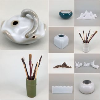 Handmade Oriental Art Accessories for Calligraphy and Painting including, painting mats, brush hangers, ceramic brush holders, brush rests, water reservoirs, water droppers from designer studios in JingdeZhen