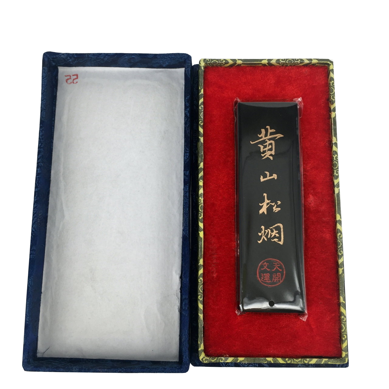 松烟 (Song Yan) Pine Soot is a very ancient type of carbon black inkstick with very rich natural matt dark colour, preferred for painting, both for to express depth and space in Shanshui landscape painting and detail such as hairs on portrait paintings. Pine soot is also used to mimic ancient calligraphy styles.