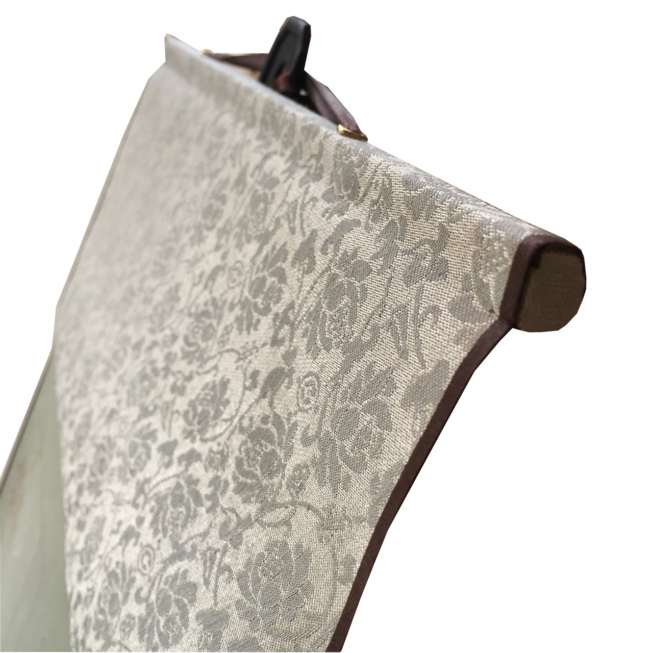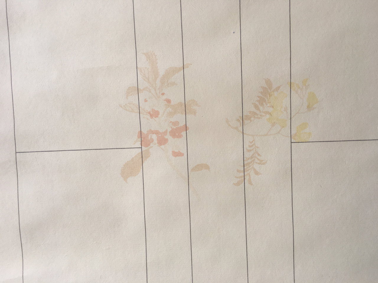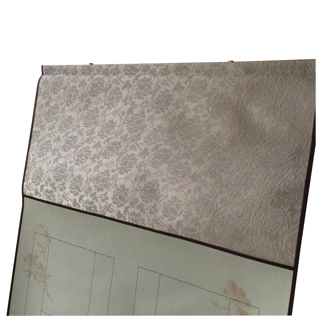xuan paper printed with floral decorations and calligraphy squares and pre-mounted on silk fabric.
